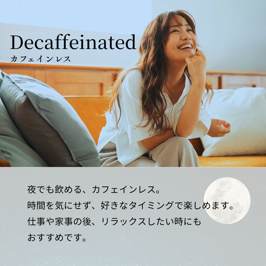 【カフェインレス】カフェインレスだから、夜のひとときも“ほっと一杯”。仕事の後、リラックスしたい時にぴったり。
