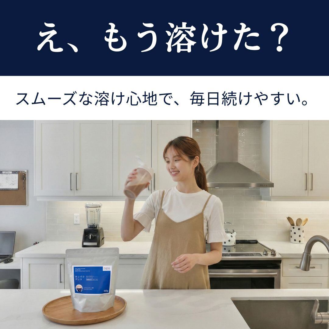 【溶けやすさ】6振りでスッと溶ける。タンパクアリスのやわらかな溶け心地は、忙しい朝にもストレスなし。